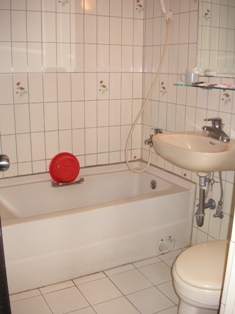 困ったのはバスタブが浅い上にシャワーカーテンがないので遠慮しいしいシャワー浴びなきゃいけないことと、暖房がないので薄ら寒いこと。