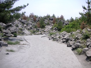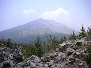 前日噴火したてだったので、ちょっと歩くだけでバフバフ灰が舞い上がり足元が真っ白。