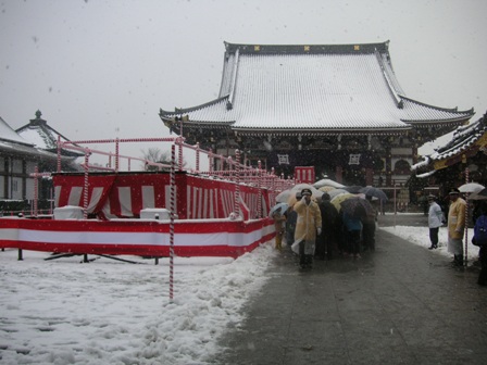 の予定が、悪天候のため豆まきから豆渡しへ。