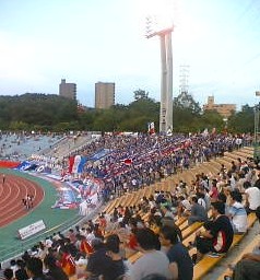駅からスタジアム2階までの遠い道のりで汗だくになり、ほっと一息ついたらもうキックオフ直前。ギリギリ到着はテンション上がらないので試合に入りにくいのよ。