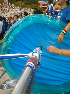 試合後にアチラのG裏に持って行ったらいっぱい水が溜まったかもね。
