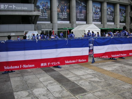 日産スタジアムの規格を知ってか知らずか実に微妙なサイズなため”洗濯物”疑惑も浮上してましたが、外壁→スタジアム内と移動しイベントスペースに落ち着きました。